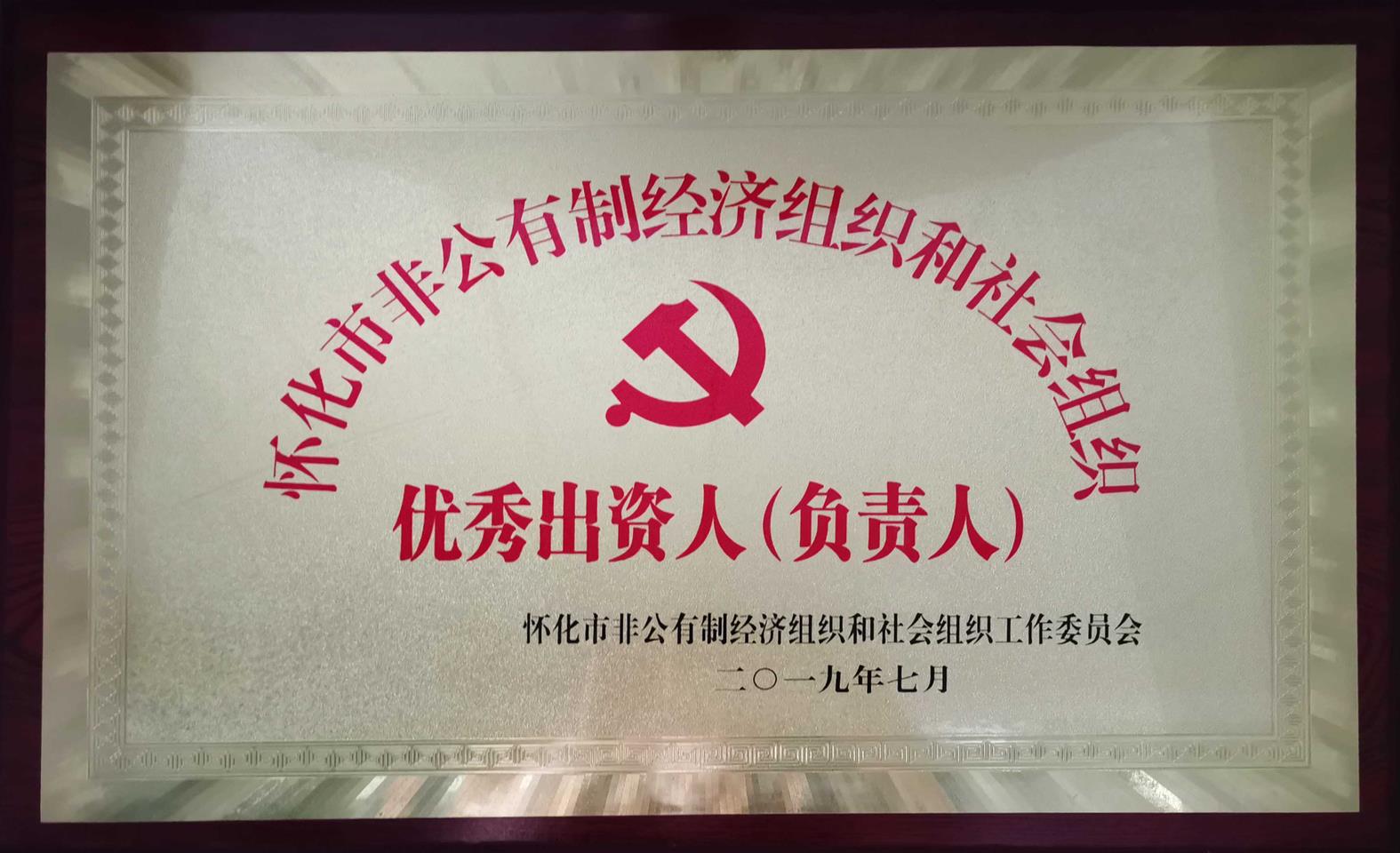 2019年7月被懷化市非公有制經(jīng)濟(jì)組織和社會(huì)組織工作委員會(huì)評為“懷化市非公有制經(jīng)濟(jì)組織和社會(huì)組織優(yōu)秀出資人(負(fù)責(zé)人)”